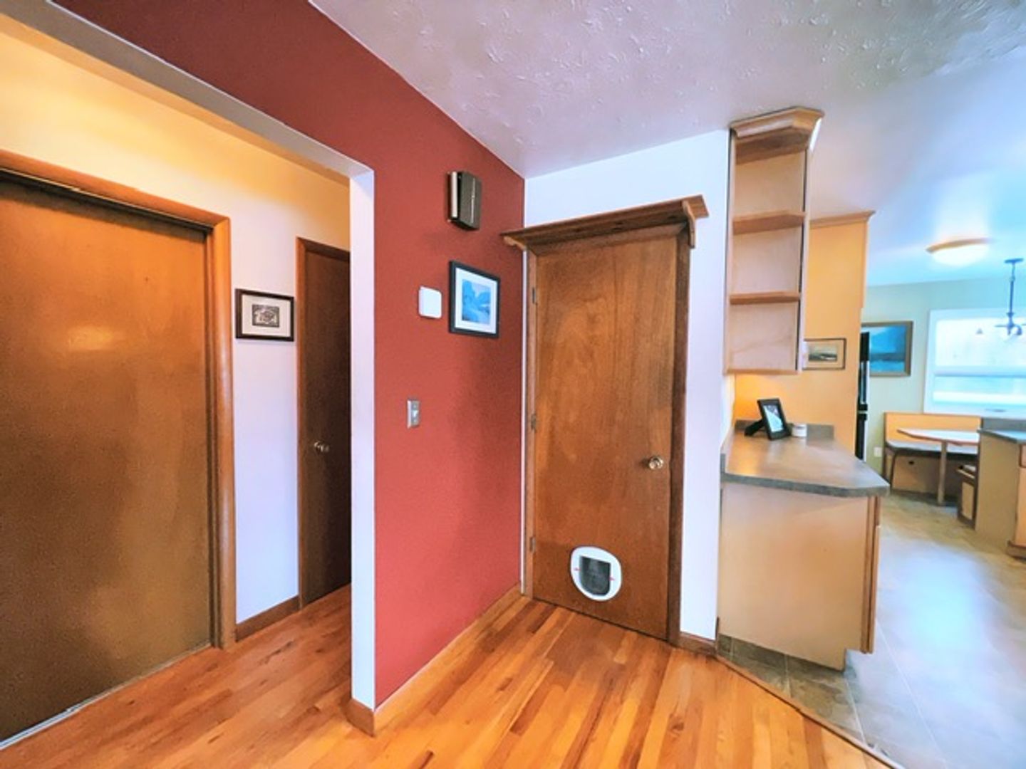 Step inside the Arctic entry to discover a warm and inviting living space, featuring a wood burning fireplace & naturally well lit living area. The laminate flooring throughout the apartment ensures easy cleaning. The spacious kitchen is equipped with built-in dining space, ample cabinet space, and matching appliances, perfect for entertaining guests or cooking up your favorite meals. The second bedroom features a built-in office space, ideal for working from home. There is ample storage throughout the apartment, so that everything has its place. You will love the shared deck and fenced-in yard, ready for you to enjoy the outdoors whenever you want. Laundry facilities are shared between both units and off-street parking is available for your convenience.