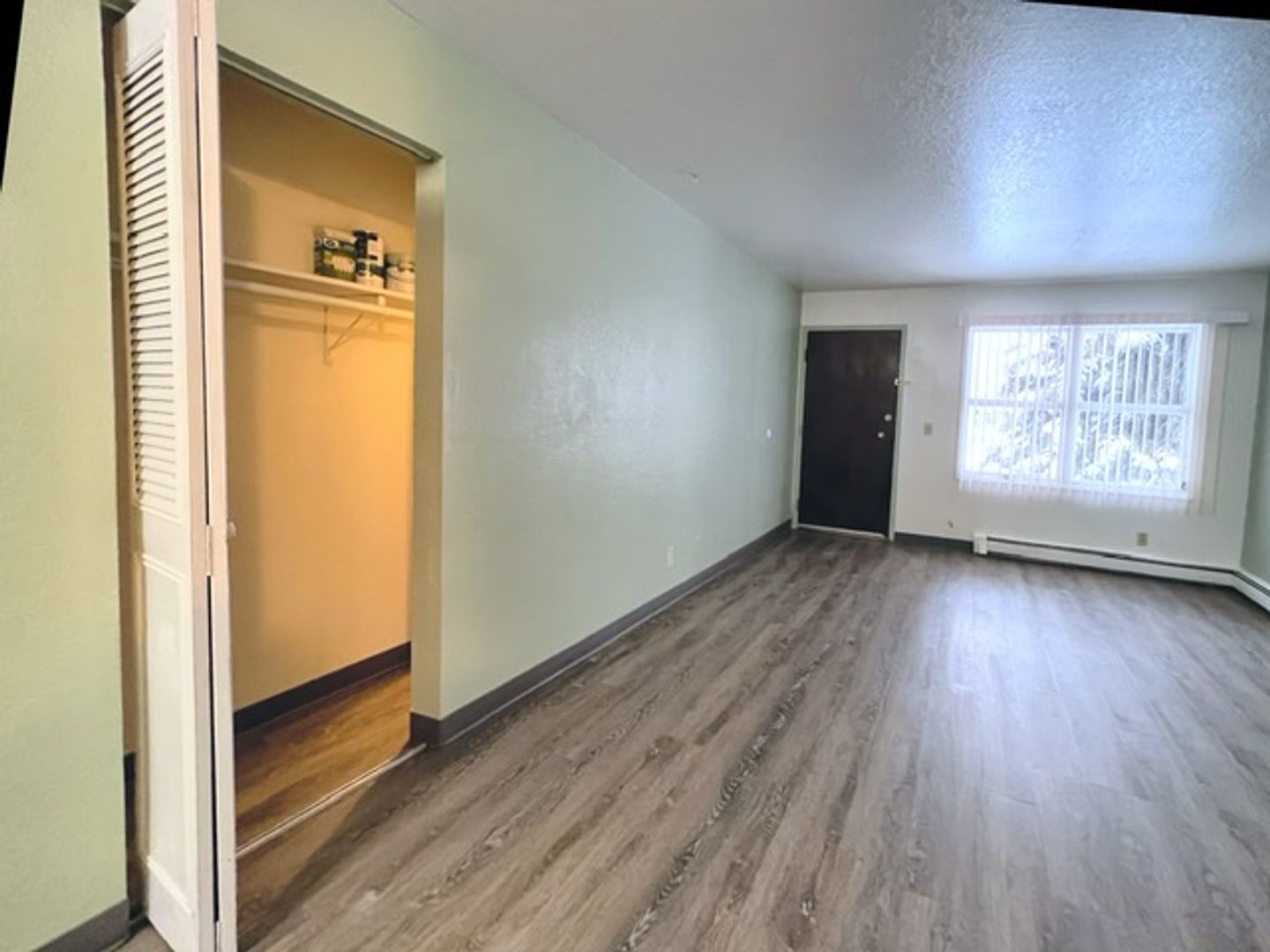 - Plenty of in unit storage: large storage closet in the living room and two closets in the hallway