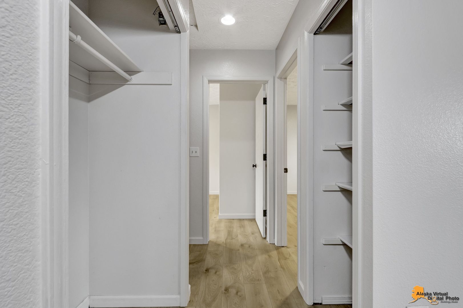 - Storage closet and linen closet in the hallway.