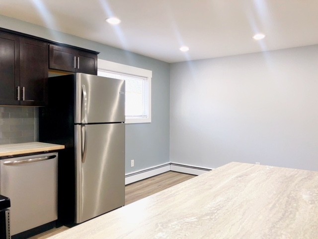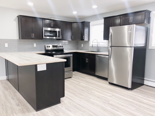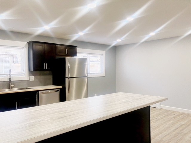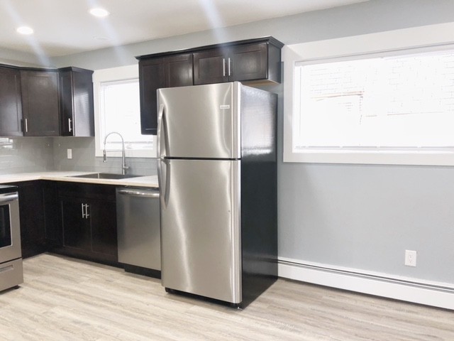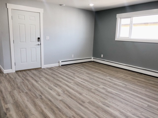 Beautifully updated top floor 2 bedroom apartment close to Downtown! Spanning 1050 sqft, this apartment features contemporary lighting, a spacious kitchen with stainless steel appliances, and laminate flooring throughout. Enjoy roomy bedrooms with large closets, a cozy dining area, and the convenience of off-street parking! Quick access to JBER, UAA, APU, AK Regional, and Providence Hospital. Coded entry into building + Coin op laundry on site.