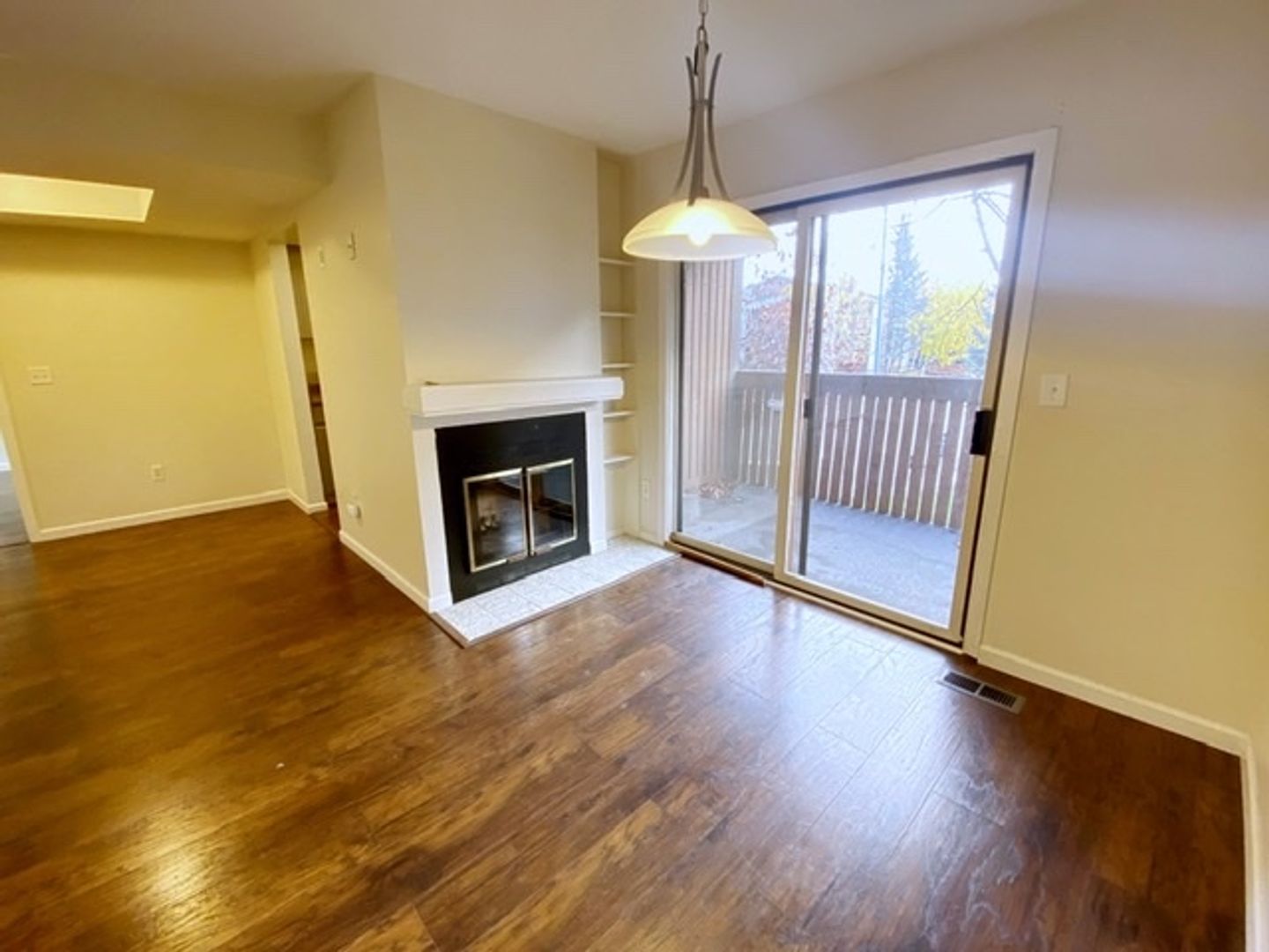 Updated and sophisticated one-bedroom apartment located in South Anchorage. Features include hardwood flooring, master bedroom with a walk-in closet and en suite bathroom, an updated kitchen with modern appliances, wood-burning fireplace, in unit laundry, and a covered balcony. It also includes one garage parking space and is located in a convenient area for commuting within Anchorage.