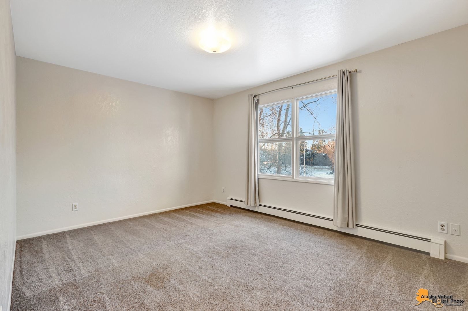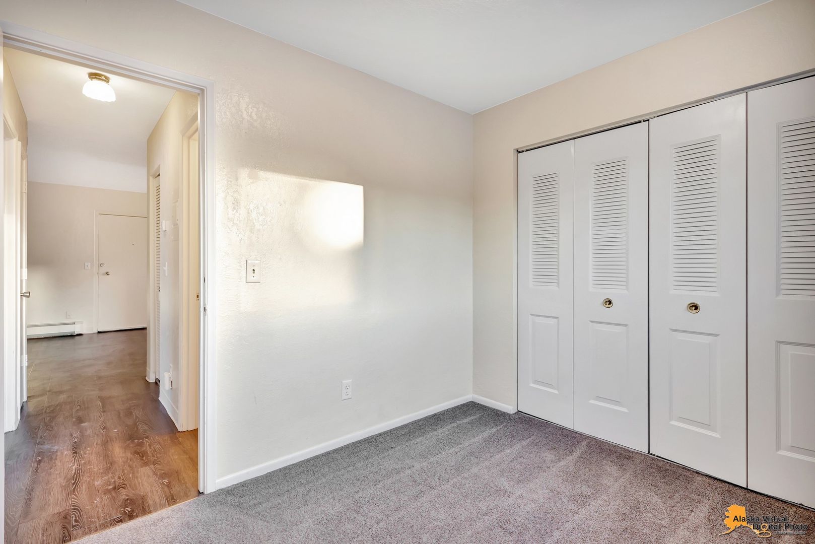 The master bedroom has a large closet and can easily accommodate a king sized bed. Natural light floods into the apartment from the East, West, and South facing windows. The apartment's kitchen includes an electric stove, refrigerator, dishwasher, and dining area - making it the perfect place to enjoy meals with family and friends. The large bathroom comes with a bathtub - perfect for relaxing after a long day. The spacious covered balcony presents an excellent opportunity to enjoy our breathtaking Alaskan sunsets.
