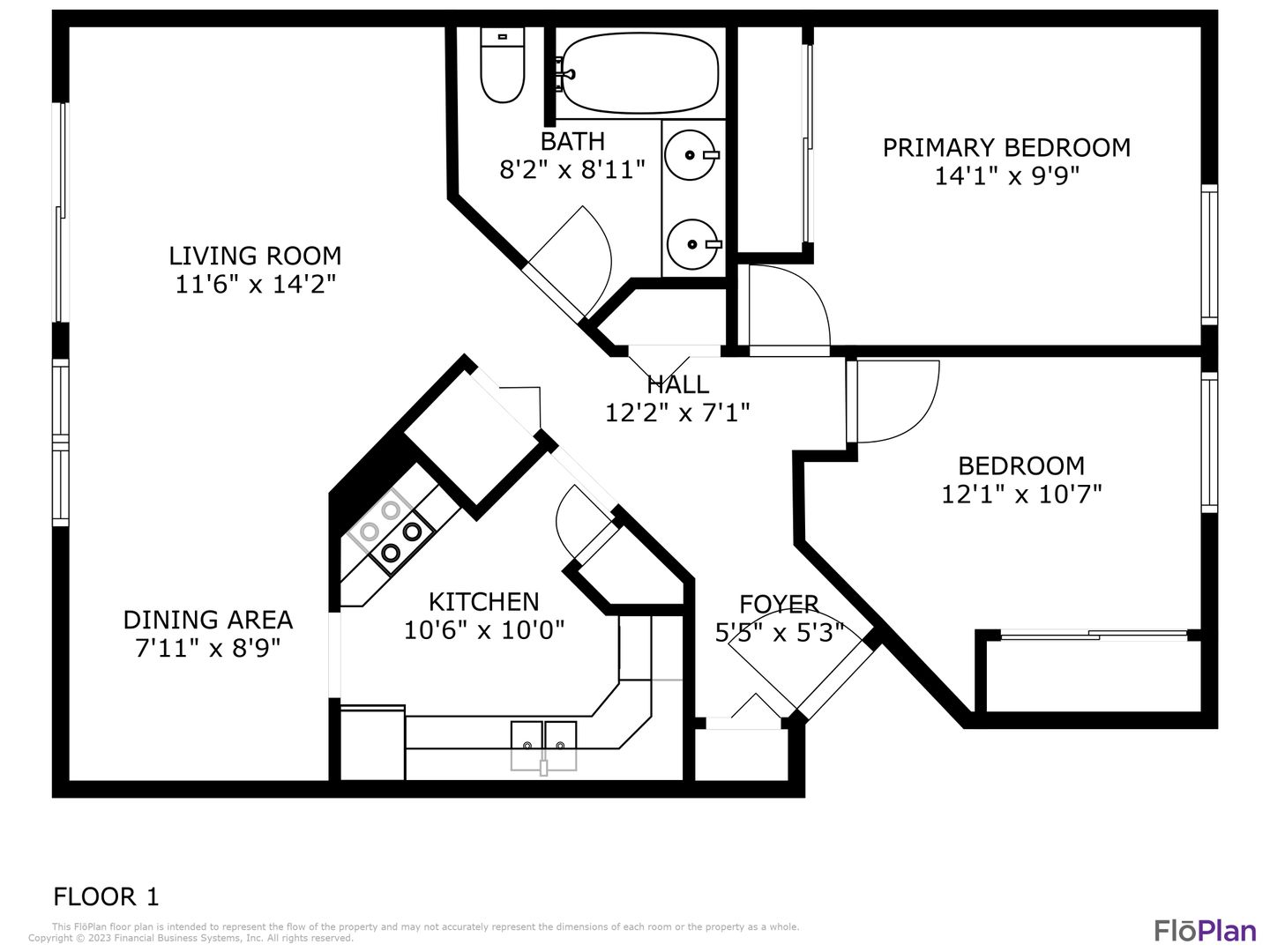 2 bedrooms, 1 bathroom