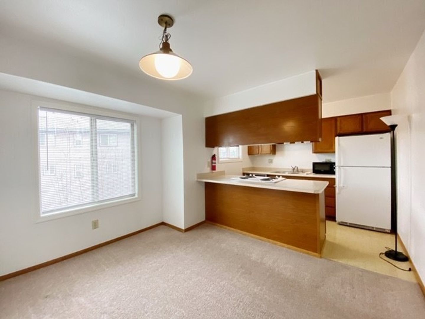 Top floor apartment in Eagle River featuring a spacious living room, a cozy kitchen with a dining area, and in unit laundry! Located in a highly requested area with easy access to JBER, parks, trails, restaurants, and shopping!