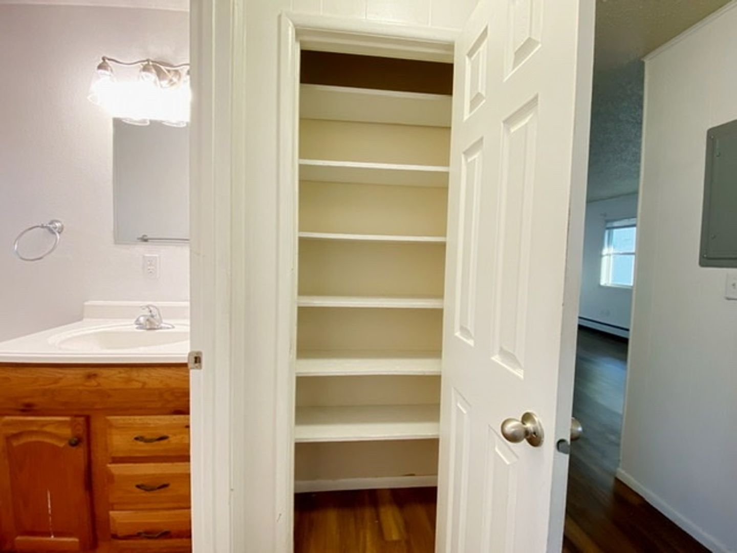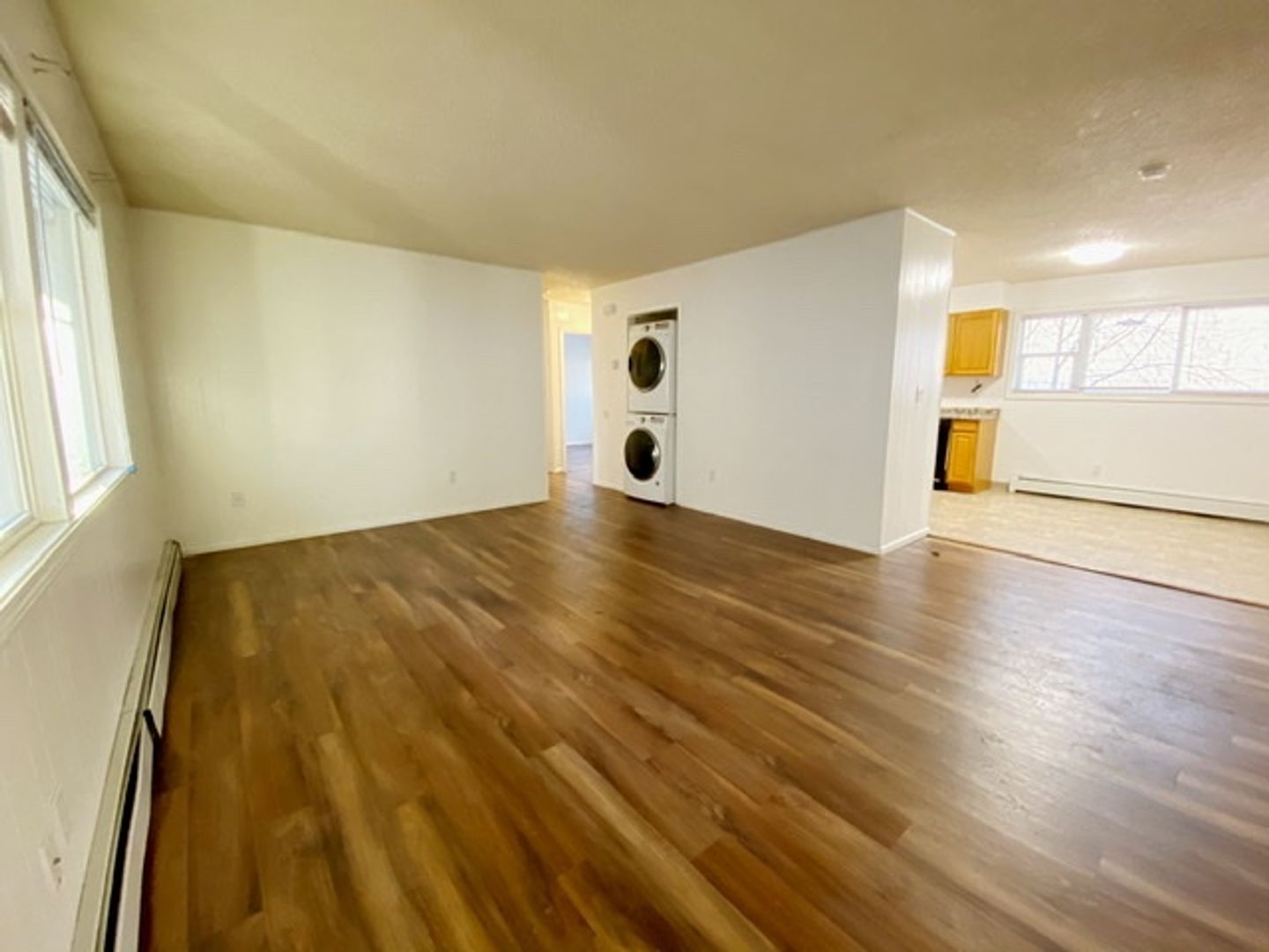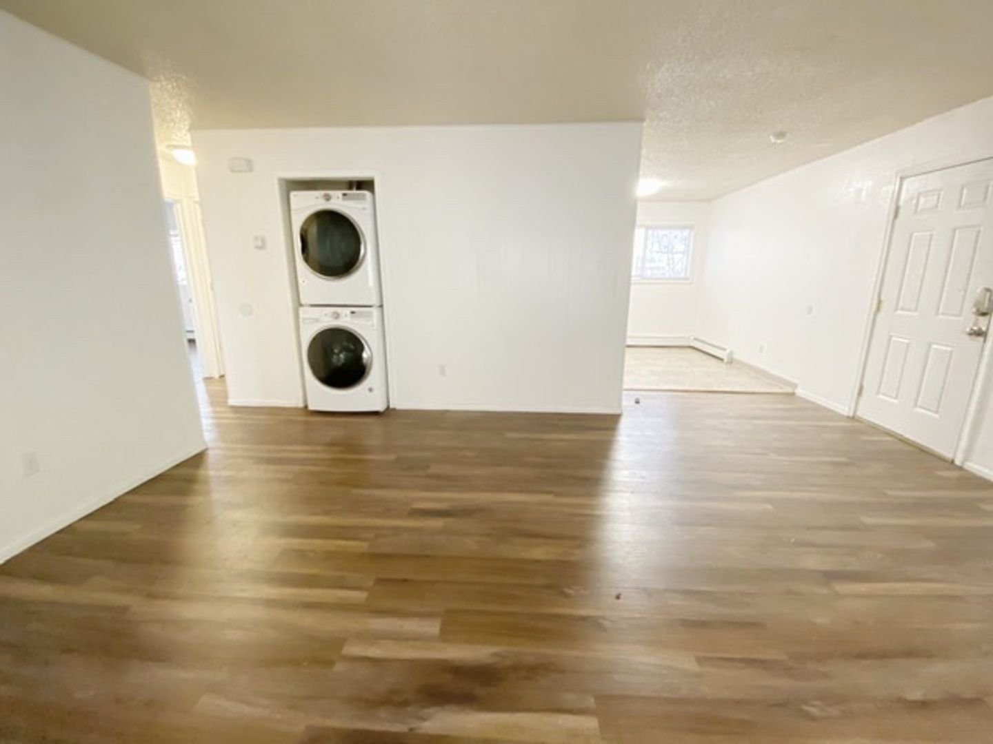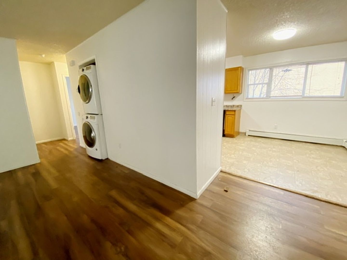 Features of this top floor apartment include: easy to clean laminate flooring, large closets in the bedrooms and hallway that offer ample storage, and a spacious living area. You'll love the convenience of having a stacked washer and dryer in unit. The kitchen is equipped with convenient amenities like a dishwasher and built-in microwave. Located within quick access to downtown, midtown, Alaska Regional Hospital, JBER, Providence Hospital, and UAA. Your new apartment is located in a prime spot that offers close proximity to everything you need. One off street parking space and one private exterior storage unit is included.