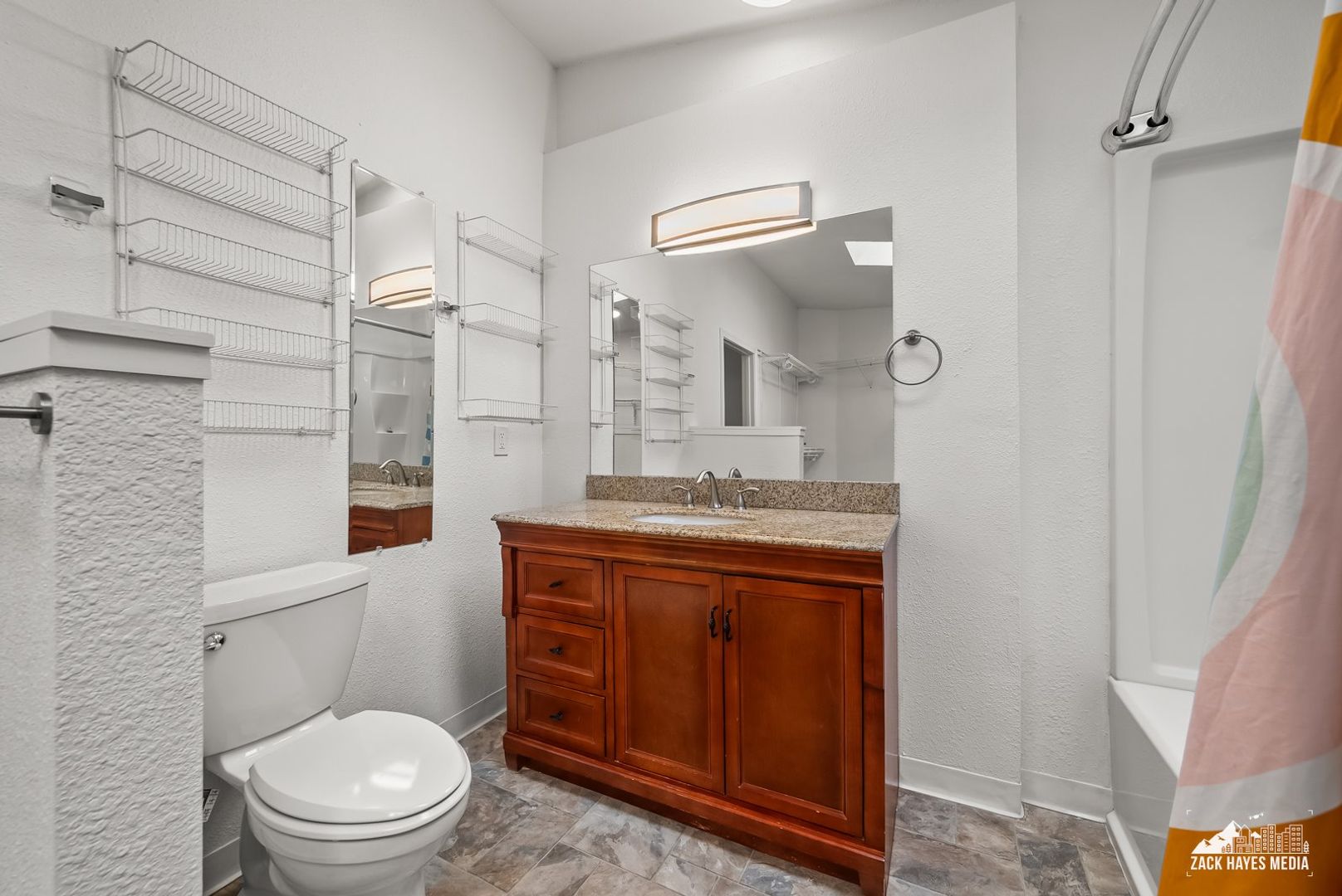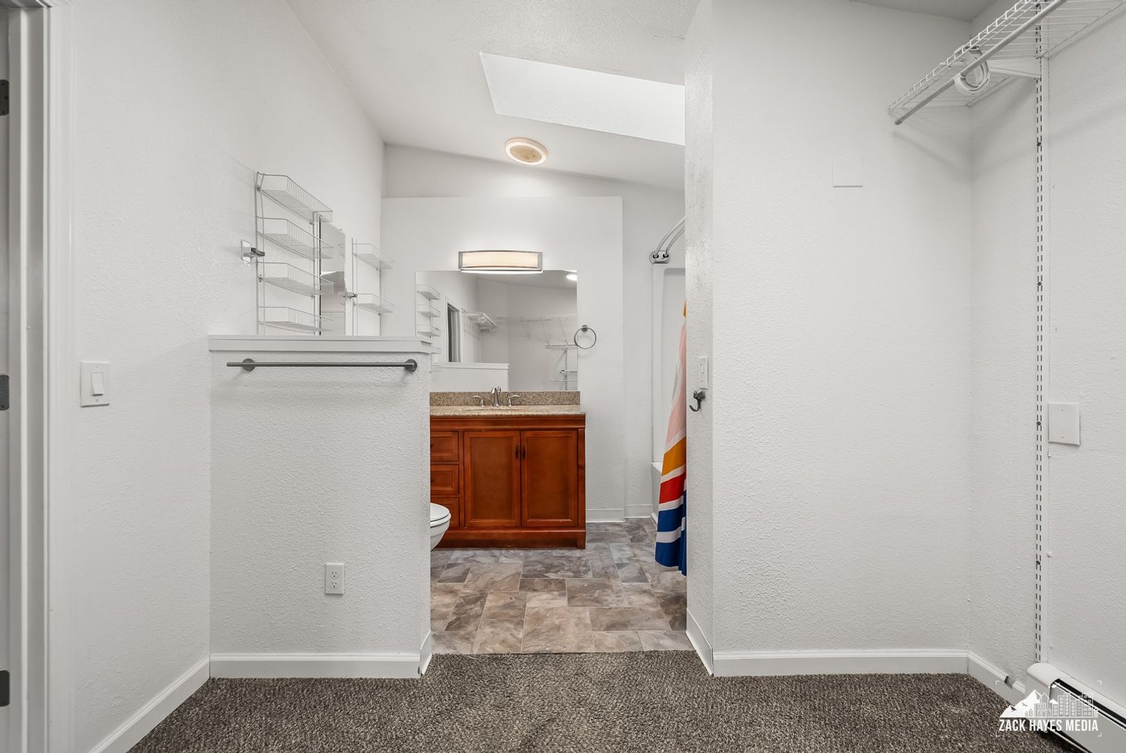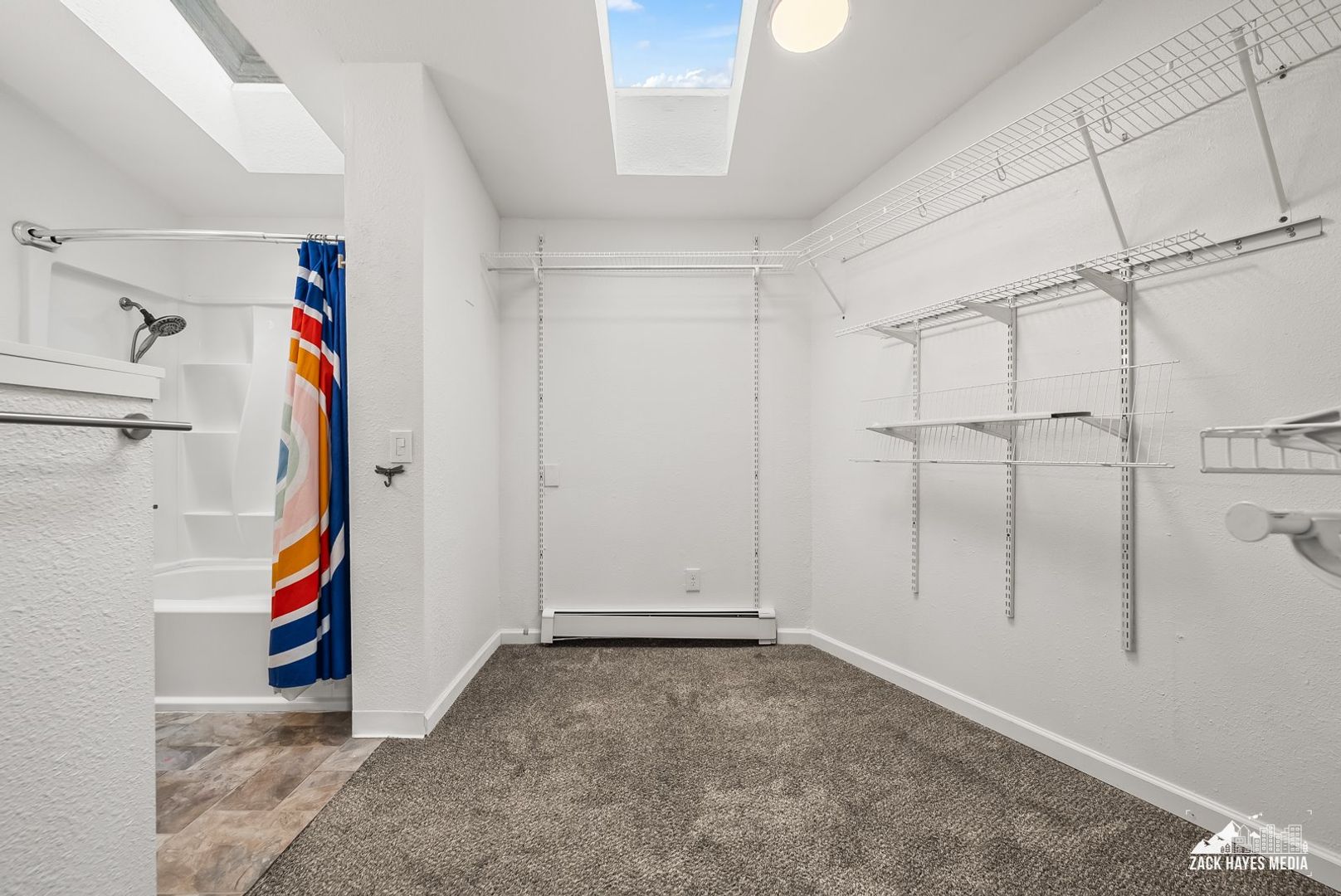 * Large master bedroom with ensuite bathroom, walk in closet, and skylights