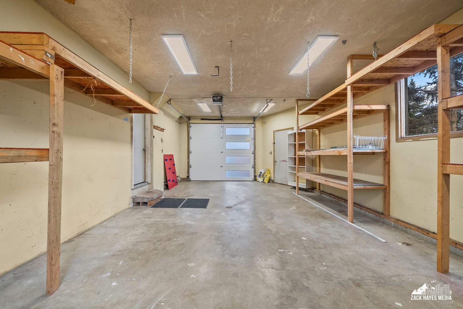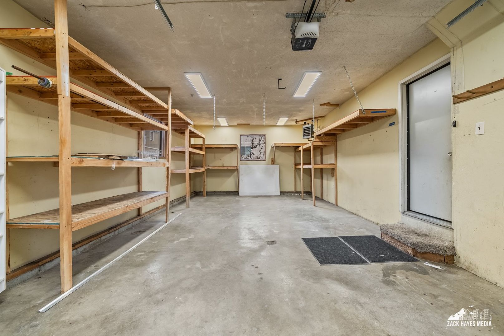 * Attached one car garage with abundant shelving/storage